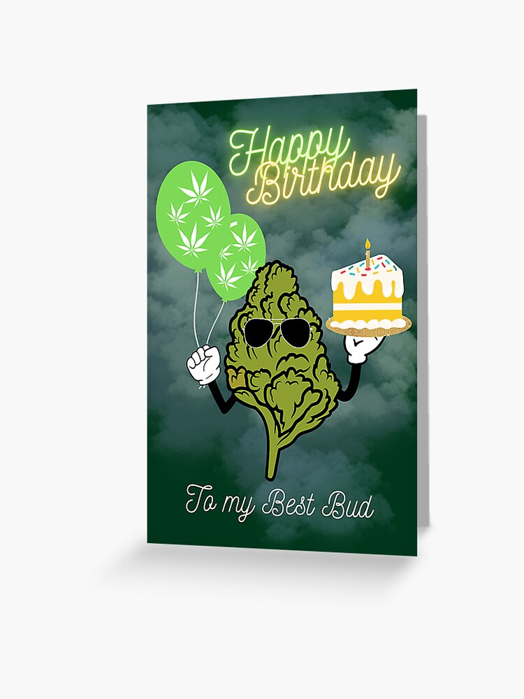 Funny Weed Birthday Card BEST BUD, Birthday Greeting for Him